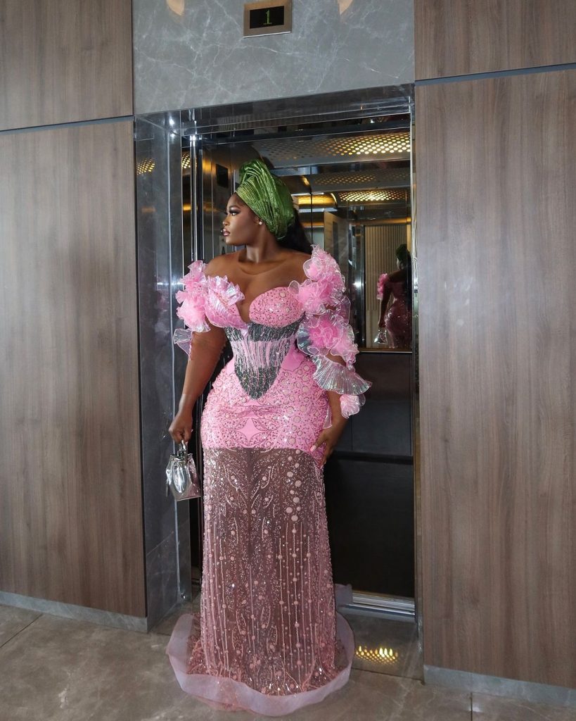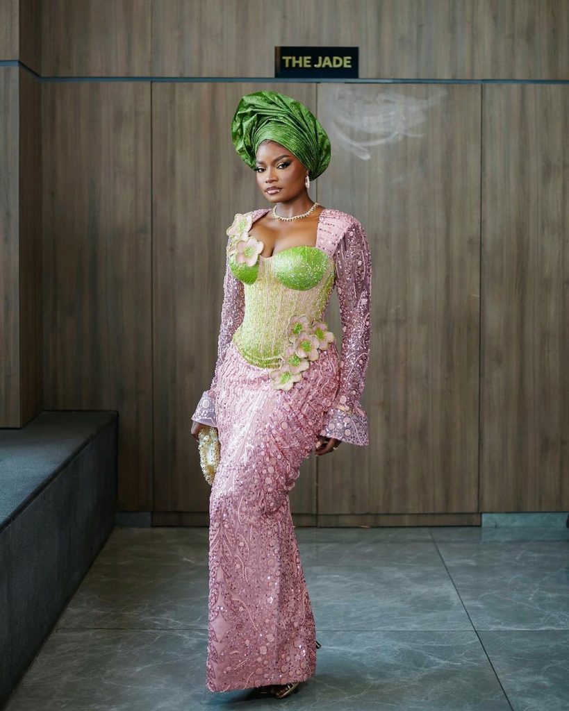 - Ama Reginald, on this pink and silver accesorized outfit says “class”. Dress: @emaginebybukola