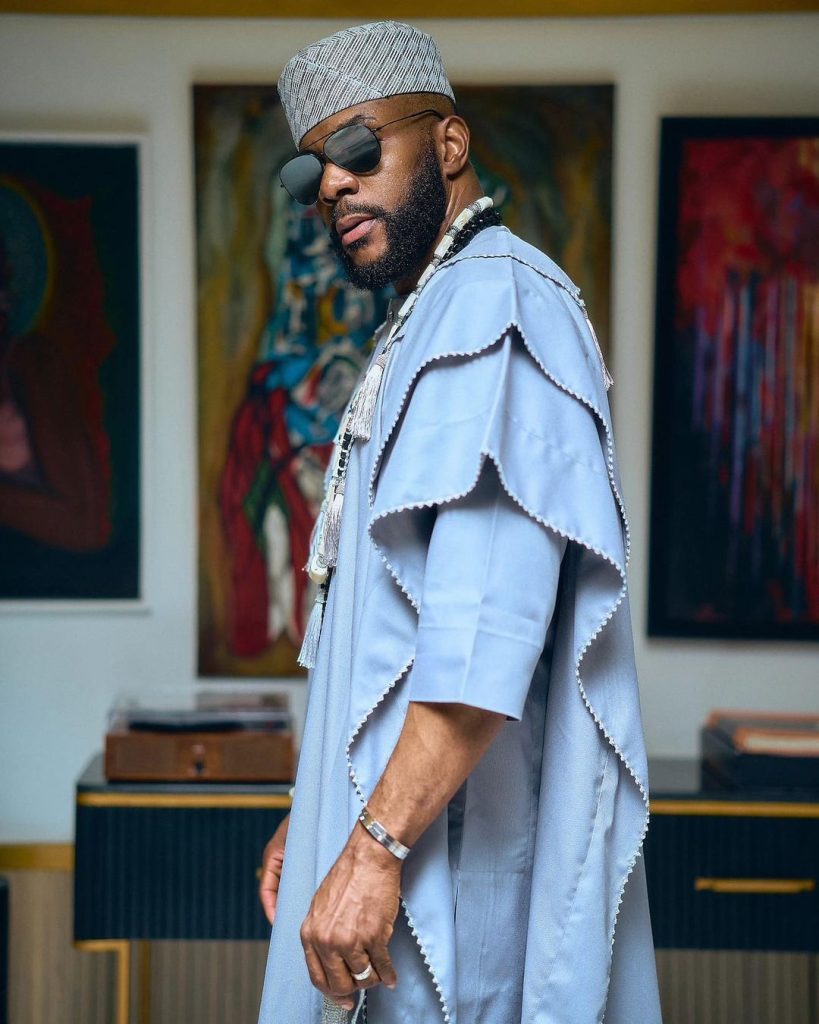 Rudeboy, on a 2-toned Agbada set by @amdiddyy
