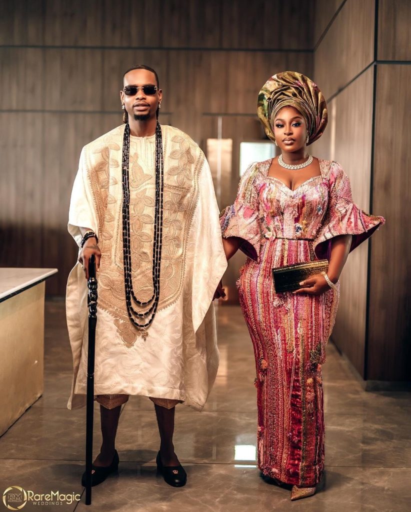Popular entertainer Idowu Adeyemi, mostly known as Yhemo Lee, and his fiancée, Tayo. Began their journey to forever over the weekend. And aside from their chemistry that has us smiling, their outfits pose a very visible chemistry.